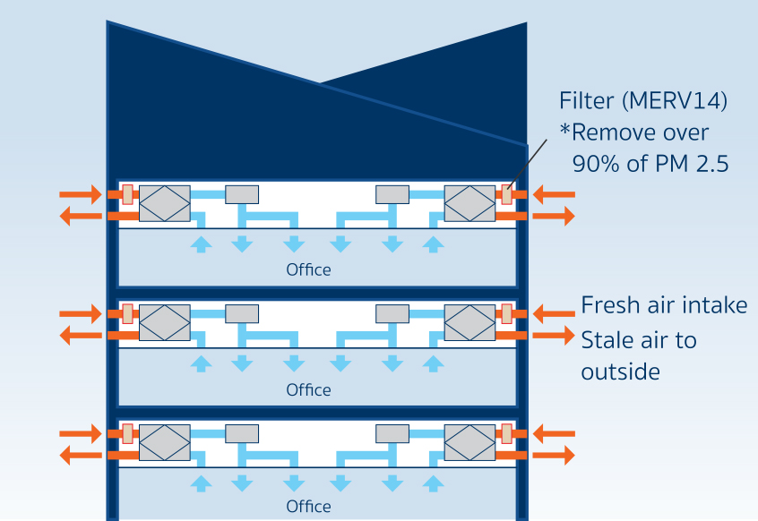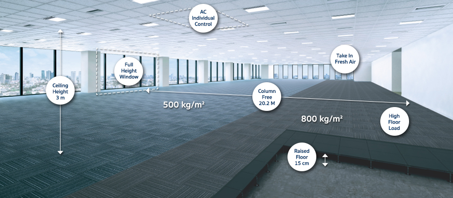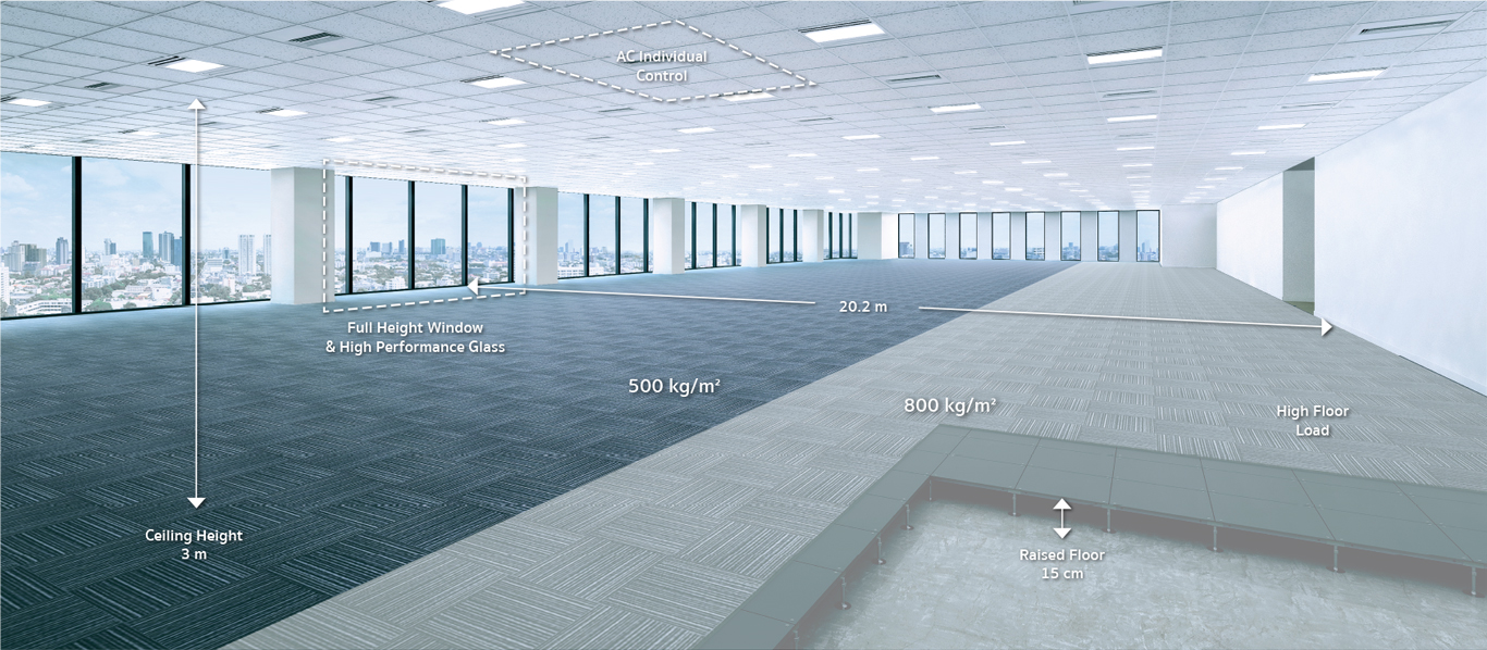 VRV multi air conditioning (with sensor control ) and space for additional outdoor unit for AC installation is available on each floor