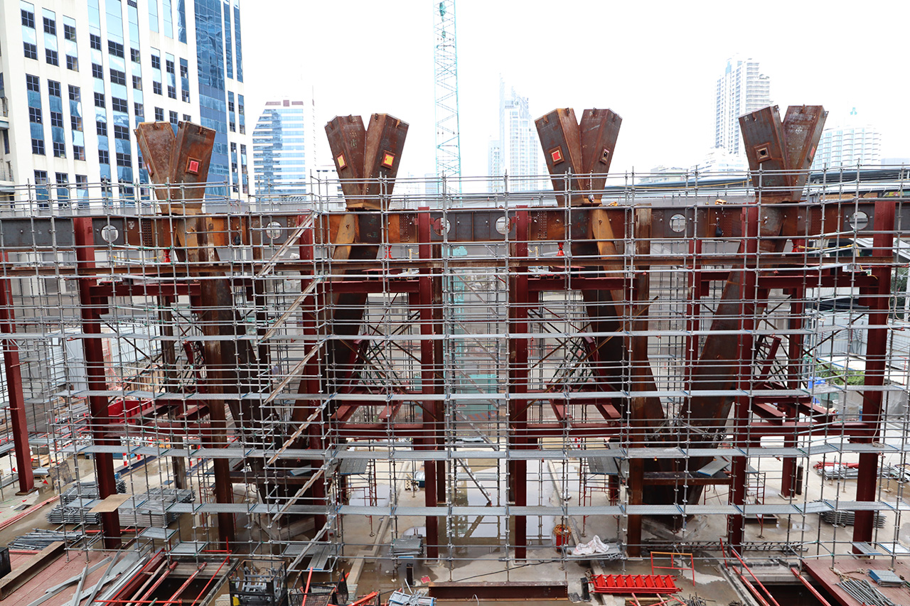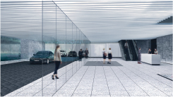 V-column has been designed to contribute a better support and add more space permitting smooth pedestrian traffic flows in and out of the tower.