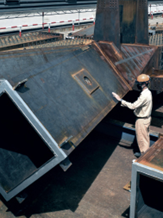 Column-free space is realized by the hybrid structure. Stability is achieved by the core wall, reducing the number of columns.